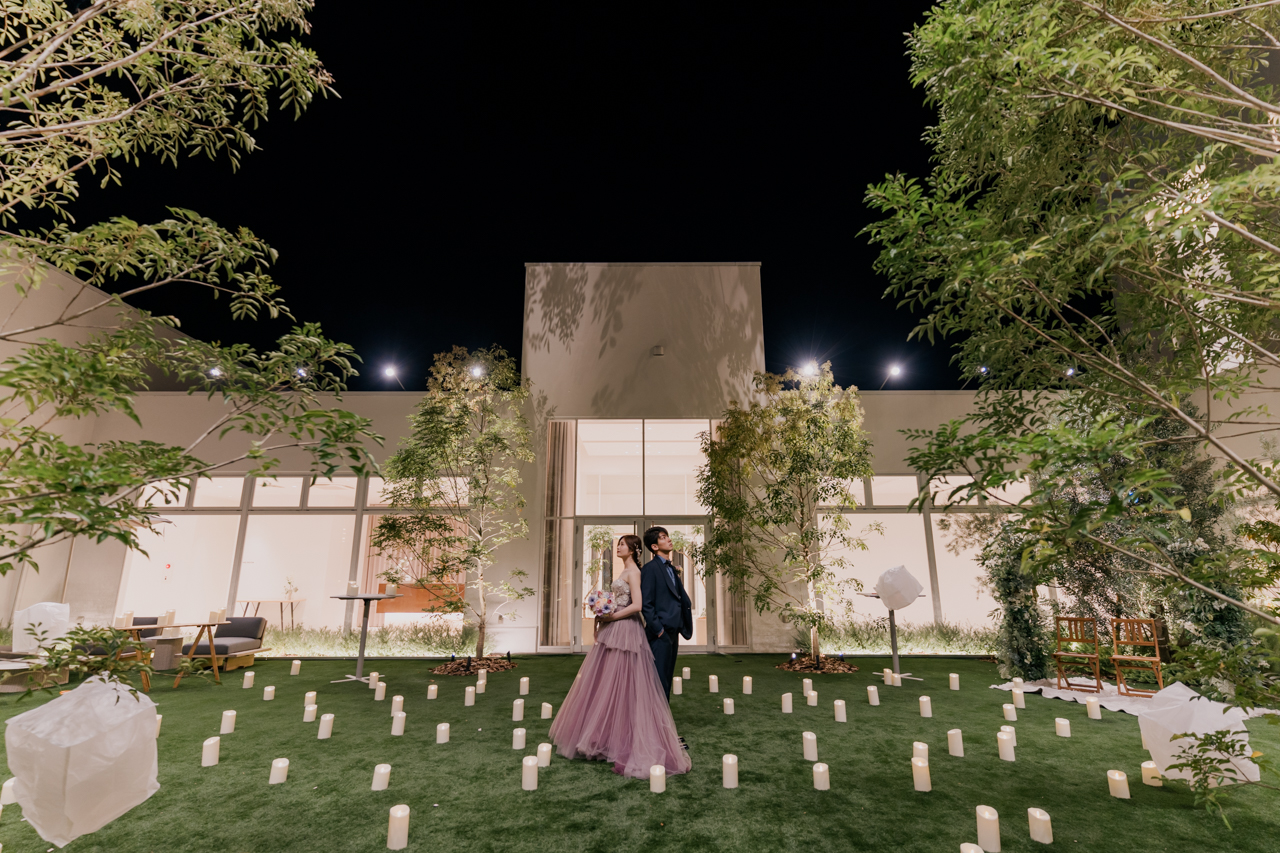 昼とは違う表情を見せる、大人のガーデンウェディング。