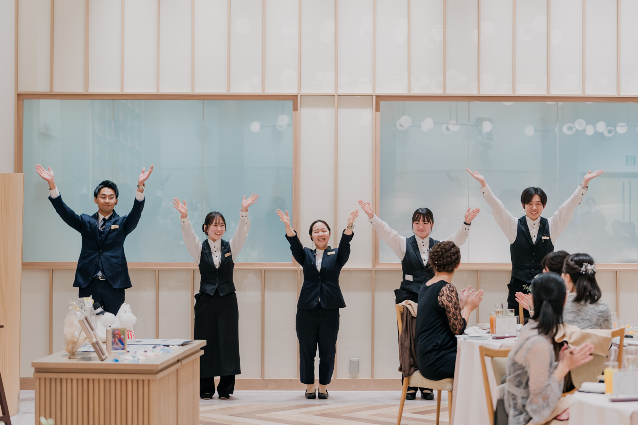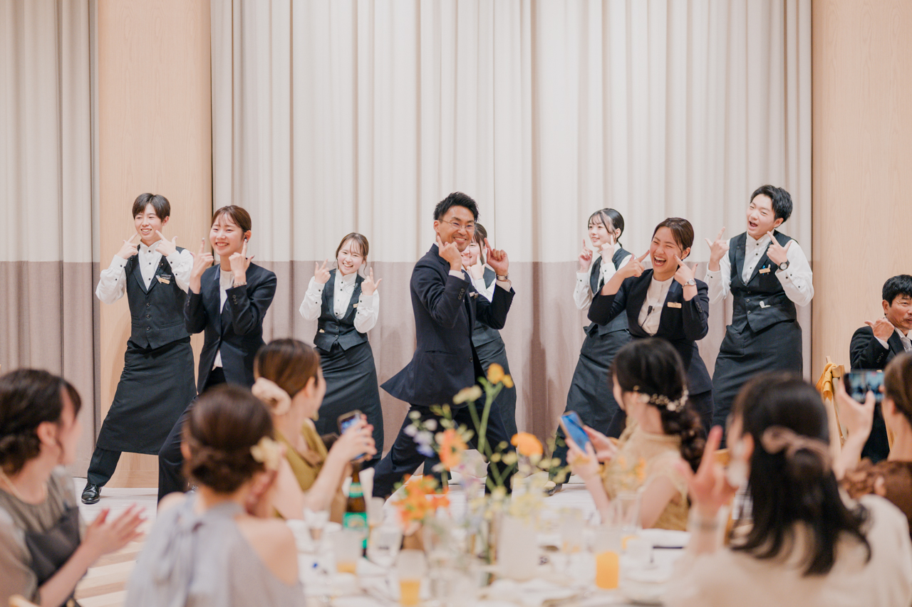 披露宴会場が一体に!笑顔と拍手が広がるサプライズ演出です。