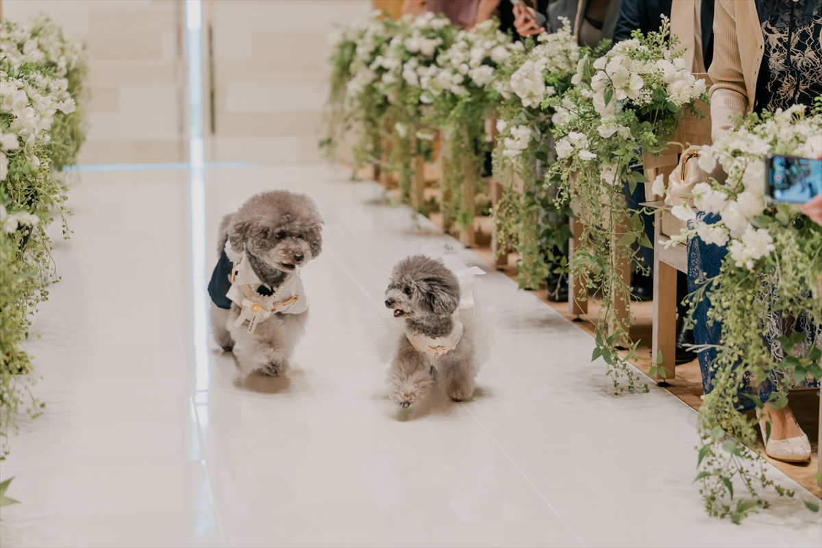 更にリングドッグのリハーサルも何度も行えるので、会場スタッフにも懐いた状態で当日を迎えられます。大切なご結婚式の準備から当日まで、かけがえのない特別な時間もペットと共にお過ごしいただけます。