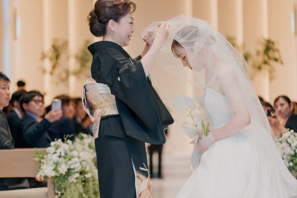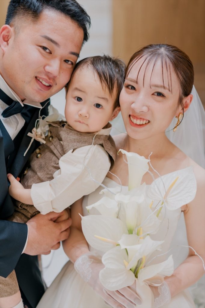 おふたりの挙式スタイルは人前式です。さやかさんのお母様よりヴェールダウンをしていただき、挙式がスタートします。おふたりの愛息子・かいちゃんがリングボーイや誓いのキスで大活躍の、温かいお時間となりました。