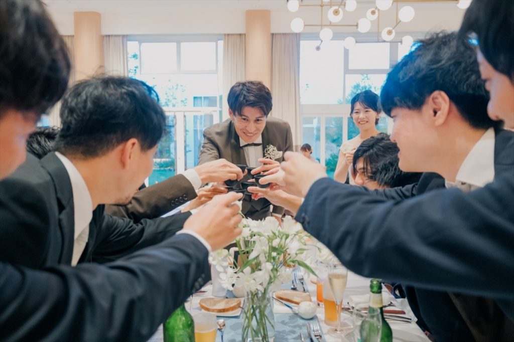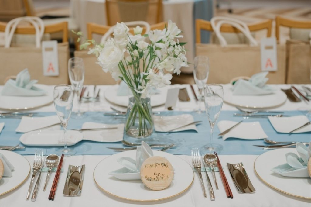 会場コーディネートやBGM、飾りつけまでこだわってくださった新郎なおきさん、新婦ことかさん。おふたりの結婚式のテーマは「Welcome to the sea world」。会場装花はゲストテーブルに白、メインはカラフルで、「浅瀬からメインに向かって潜っていくと綺麗なサンゴ礁が見える」…そんなイメージでお話しくださいました。おふたりの世界観に飛び込める、こだわりいっぱいの一日となりました。